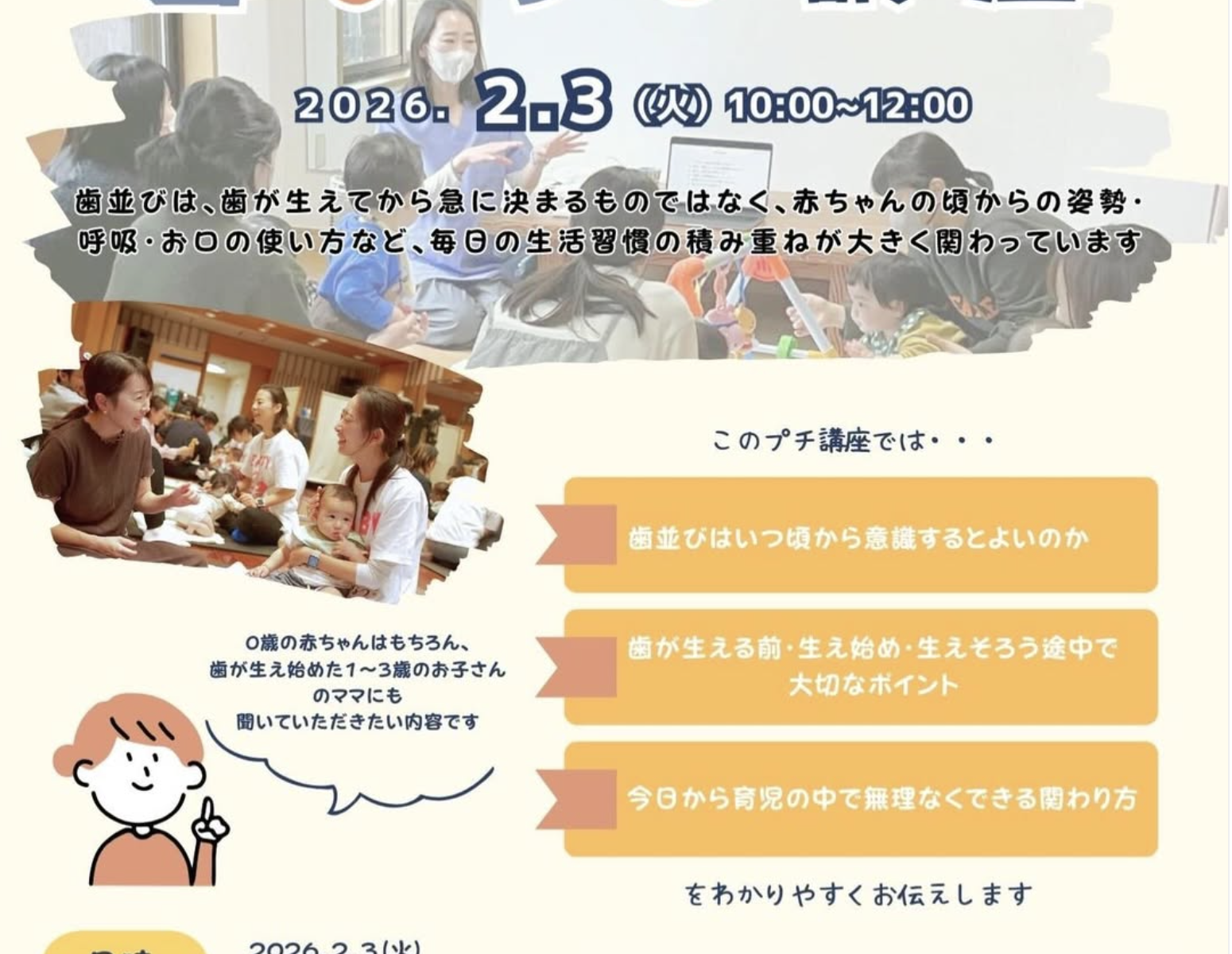 わたしの日、次回2/3のイベントは、『0歳から始める歯並び講座』